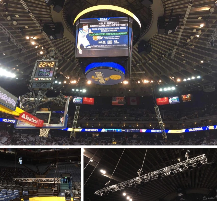 The NBA Golden State Warriors basketball hall lighting truss USES the Shinestage stage catwalk. Catwalk touring truss is a new stage, its overall design on the basis of subverts the traditional truss structures from warehousing, transportation, installation, receive, and a series of annoying lock process to solve the low efficiency of the truss construction spot, for large-scale activities, stage construction is a historic innovation which has gained recognition and affirmation from the customers and the users.