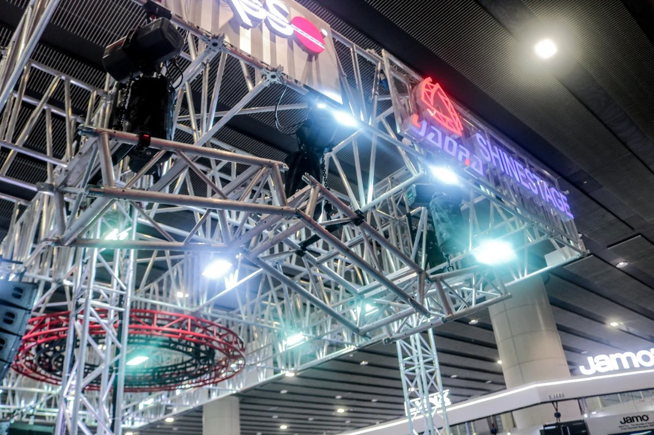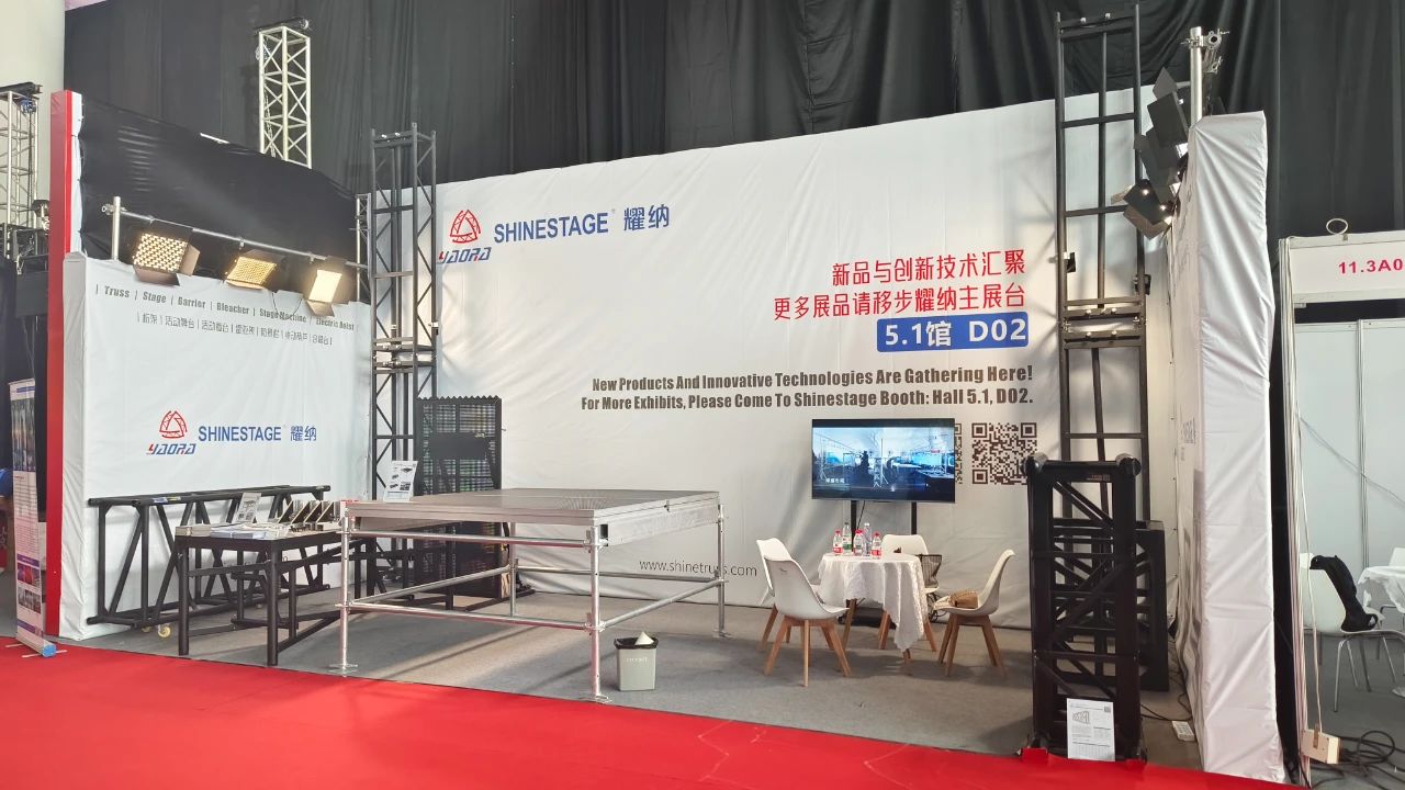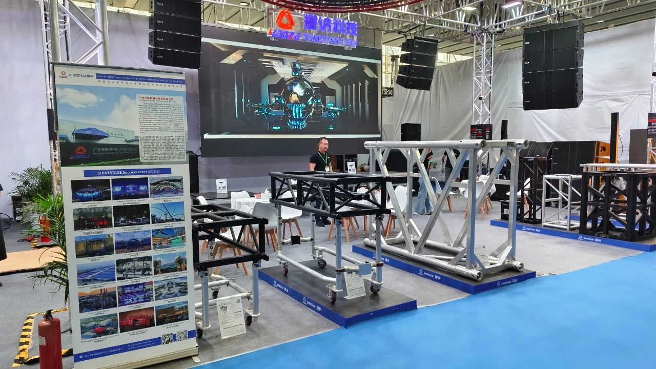 1.Shinestage understands that the dazzling brilliance of the stage begins with a solid and reliable structural foundation and is sustained by a safe, stable ground platform and smooth, efficient construction. At this exhibition, we showcased the truss structure system as the core pillar, along with professional stage platforms and intelligent tool carts, presenting their extreme performance, limitless possibilities, and on-site efficiency for large, complex, and dynamic stage applications.